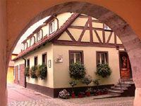 Wolframs-Eschenbach, Heimat des Parzivaldichters Wolfram von Eschenbach (1170 bis 1220 ) mit Ihrer Historischen Altstadt. Drehort des Hotzenplotzes Die reizvolle, historische Kleinstadt Wolframs-Eschenbach präsentiert sich Ihrem Besucher mit einer vollständigen Stadtmauer mit Befestigungen, Türmen, Toren und Zwingern aus dem Mittelalter (13. 14. und 15. Jahrhundert). Beim Anblick des alten Rathauses, des Deutschordensschlosses des Vogteigebäudes und des Liebfrauenmünsters fühlt sich der Besucher ins mittelalterliche Leben der 900jährigen Stadt versetzt. |