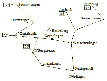 Gerolfingen liegt in Mittelfranken auf der ST2218 zwischen Dinkelsbühl und Wassertrüdingen. Unser Landgasthaus befindet sich direkt an der Hauptstraße (von Dinkelsbühl kommend, linke Straßenseite). Einen freien Parkplatz finden Sie vor dem Haus oder im Hof. |