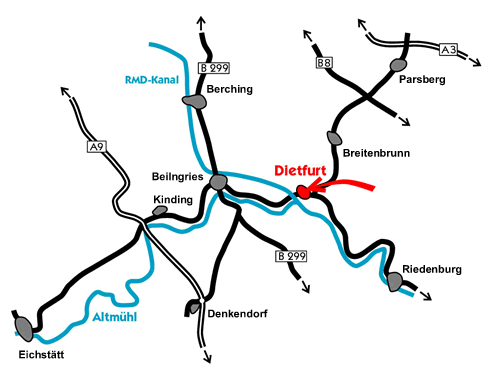 Dietfurt ist ein staatlich anerkannter Erholungsort im Naturpark Altmühltal in der jura2000-Region im Herzen Bayerns. Der Ferienort liegt malerisch eingerahmt von sieben Juratälern, deshalb auch der Name Dietfurt - "Die Siebentälerstadt". Entspannen, genießen, die Seele baumeln lassen im Einklang mit der Natur, wandern und Rad fahren in romantischen Tälern und auf weiten Jurahöhen - all dies und noch vieles mehr erleben Sie in Dietfurt und seinen Orten. |
